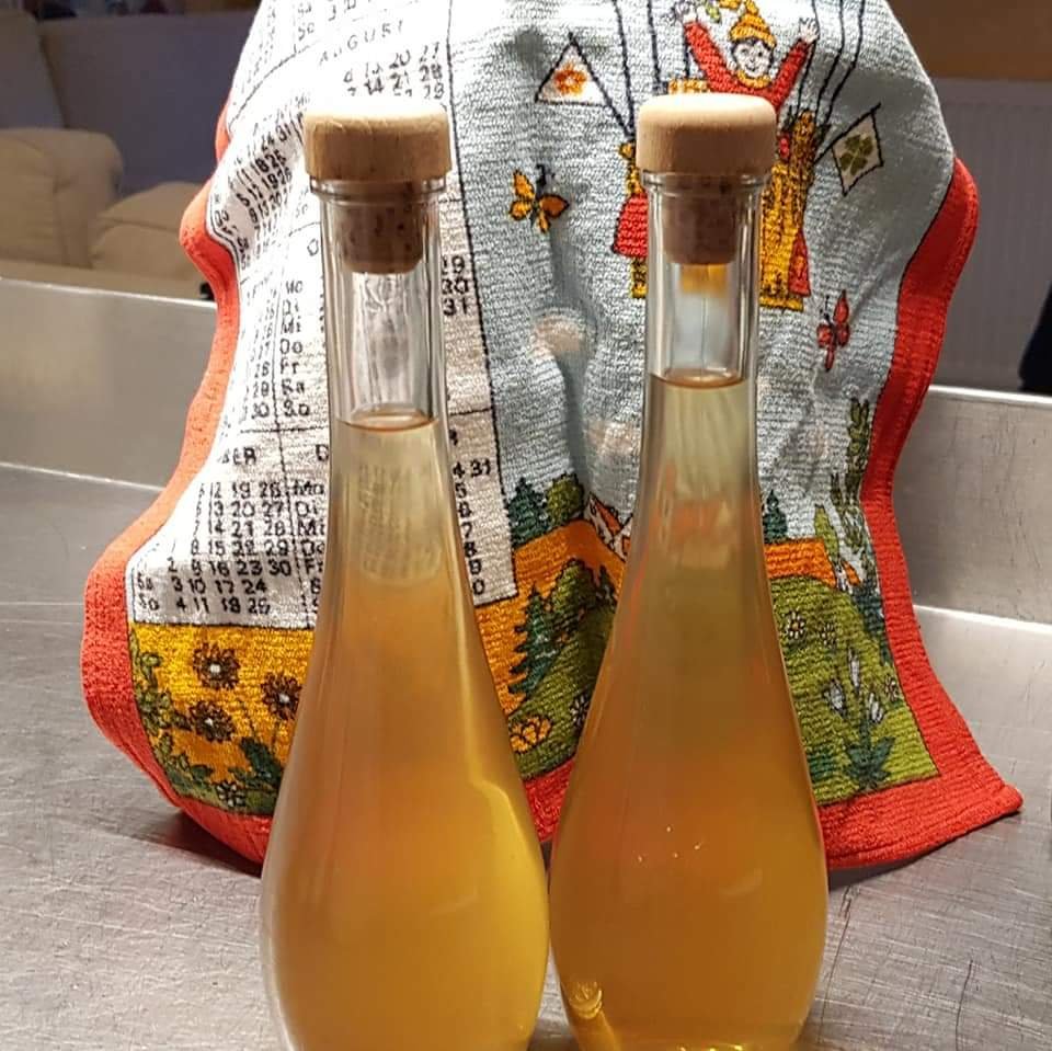 Durch Mulltuch, oder Geschirrtuch und Sieb filtern, das Obst in Schraubglas füllen zum backen, oder für Dessert zu verwenden!