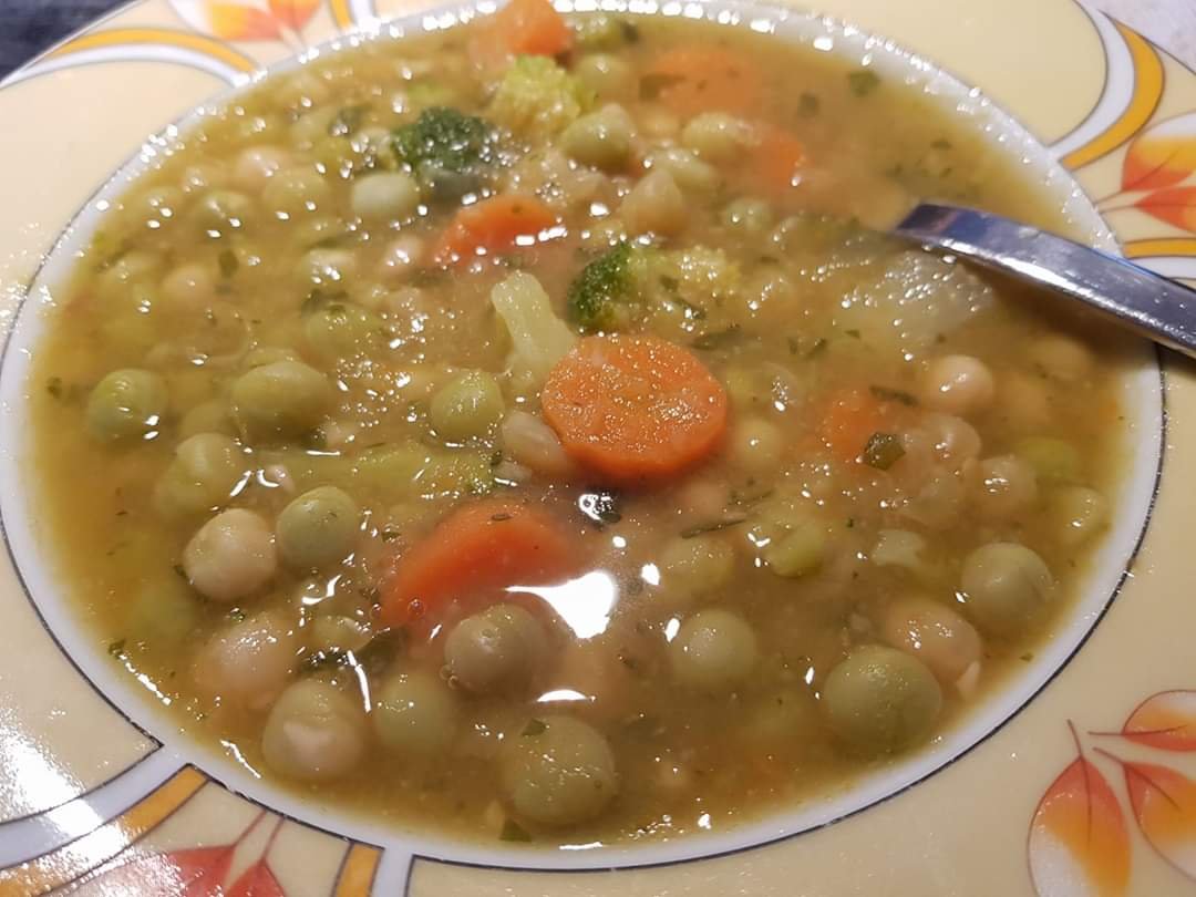 Etwas Speck, oder Schinkenwürfel in Butterschmalz leicht anbräunen, Lauch und/oder Zwiebel, 1-2 Knoblauchzehen fein geschn. kurz mit anbräunen, mit Wasser ablöschen dann die eingeweichten Erbsen dazu müssen ca. 40 min kochen, nach der Hälfte der Garzeit das vorbereitete Suppengemüse, gern auch 1 o. 2 Kartoffeln und Kräuter Petersilie, Maggikraut, Schnittsellerie was halt da ist dazugeben, mit Koriander, Kurkuma, Muskat, Salz, Pfeffer, ein wenig Hauch Ingwer abschmecken!
