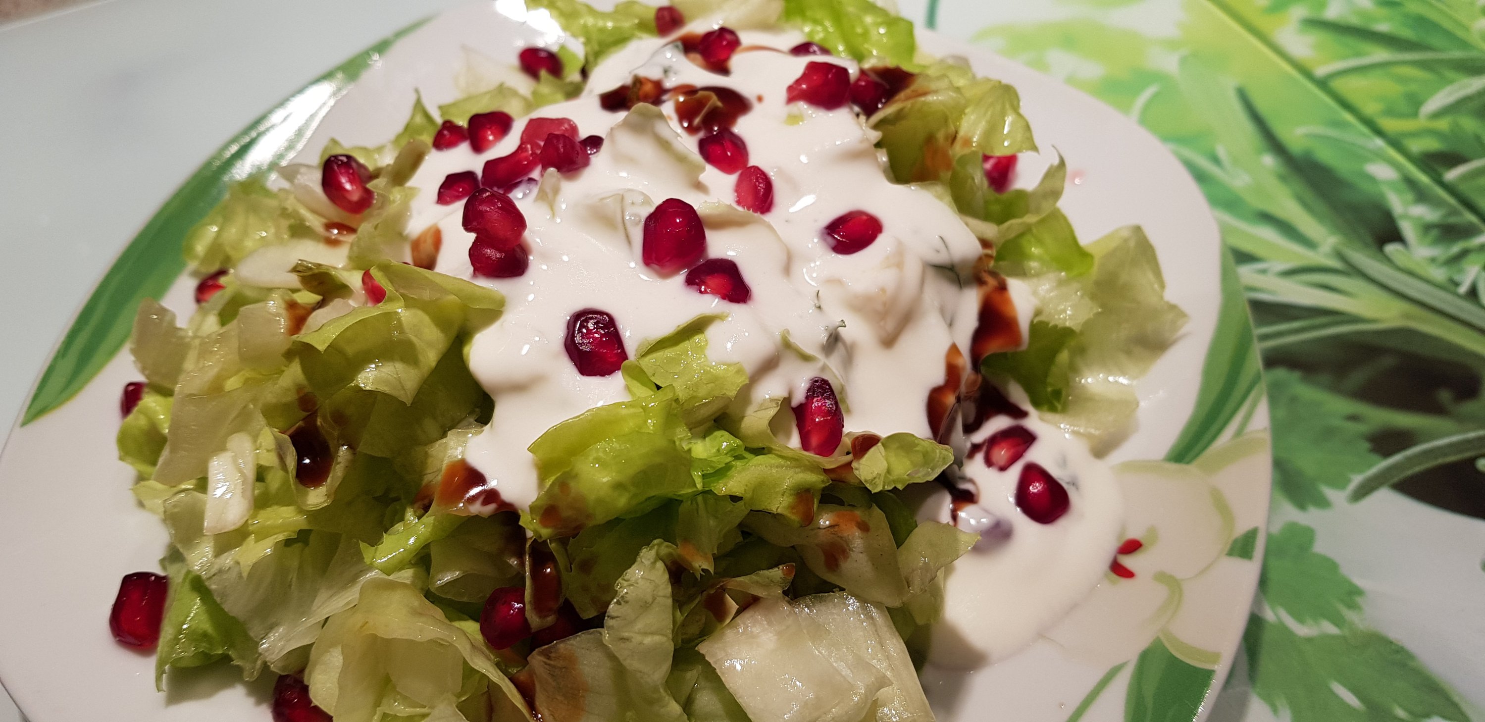 Essig, Salz, Pfeffer und Kräuter nach belieben, alles mischen und auf dem Salat anrichten…