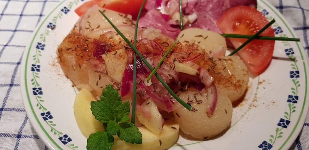 Mal bisschen abgewandelt mit Apfelstückchen und roten Zwiebeln! Dazu gutes Bauernbrot mit Butter! Lecker!