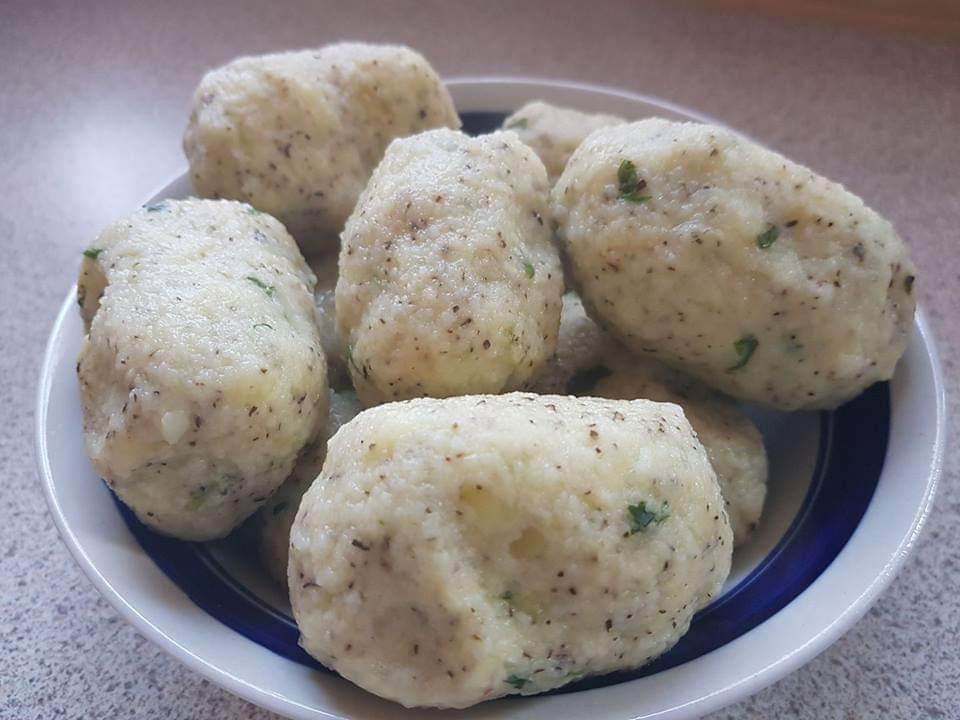 Alles gut vermengen und mit nassen Händen zu Klössen formen, in das kochende Wasser geben, wenn sie oben schwimmen und drehen sind sie fertig!