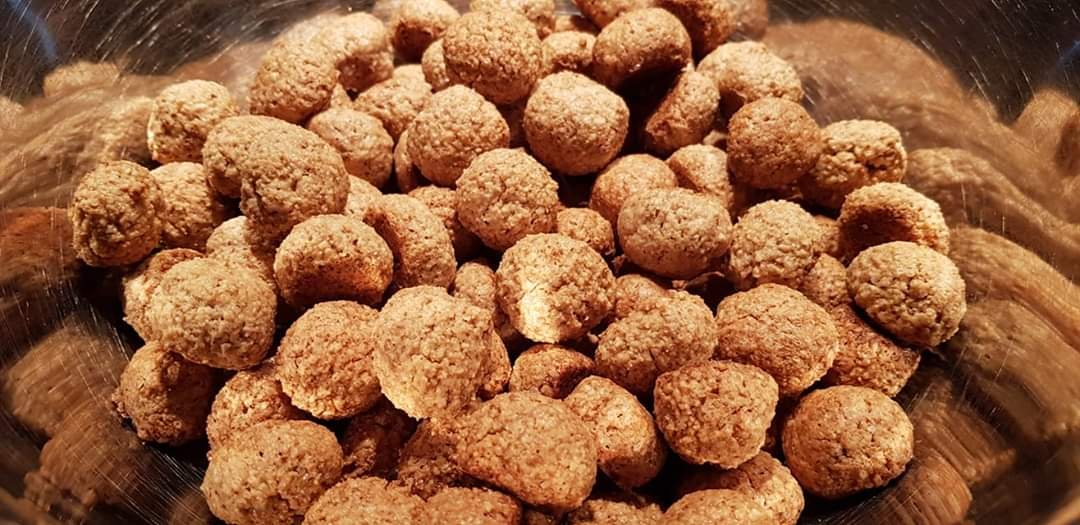 Eiweiss zu Schnee schlagen, nach und nach Zucker und Gewürze einrieseln lassen, dann Nüsse unterheben.