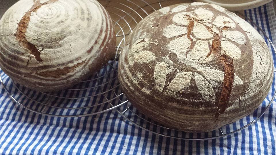 Den Teig erst langsam, dann schneller lange kneten bis es eine homogene Masse ist, abgedeckt je nach Aktivität des Sauerteiges mind. 1 Stunde ruhen lassen, habe 2 x gefaltet, dann Brote formen ins Gärkörbchen und nochmal min. 1 Stunde gehen lassen! Backen 15 min 250 Grad/ mit schwaden, nach 15 min abdampfen und noch 45 min bei 200 Grad weiter backen!