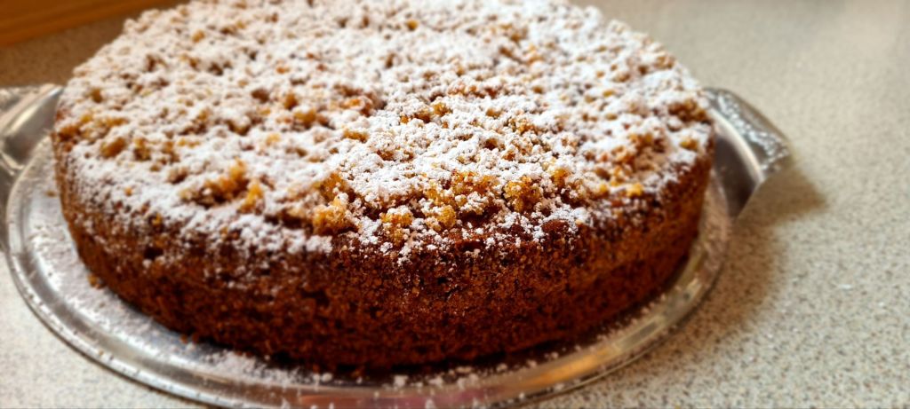 Auskühlen lassen, dann mit Messer vorsichtig mit ca. 1 cm Abstand um den Rand vom Kuchen schneiden, nich bis zum Boden, mit Esslöffel aushöhlen und zerkrümmeln.