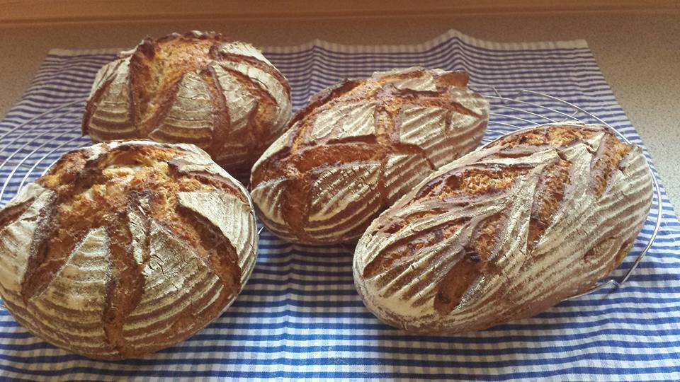Sauerteig und alle Zutaten zu einem nicht zu festen Teig verkneten und ca. 60 min gehen lassen. Während der Gärzeit Teig 1-2 Mal kurz durchkneten! Anschließend Brot formen und im Gärkörbchen gut aufgehen lassen!